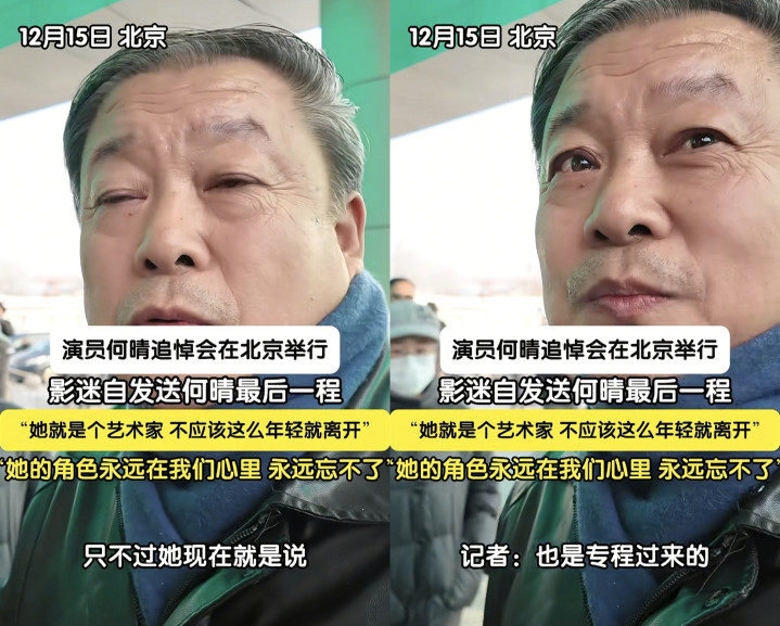 听这位影迷说他是专程过来参加何晴的追悼会的,从这位满头白发的男影迷说的一句话,说明了何晴在影迷心中的份量
